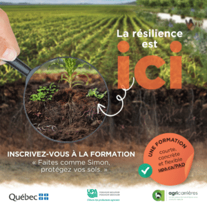 En ligne • 7 heures • Cégep LévisCette formation a pour objectif d’identifier les éléments qui permettent au sol de procurer à son propriétaire des rendements stables d’une année à l’autre, en plus de mieux résister aux événements climatiques extrêmes.